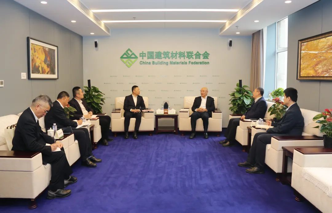 近日,中国建筑材料联合会党委书记、会长阎晓峰会见了到访的厦门艾思欧标准砂有限公司党委书记段英南一行。联合会党委副书记、常务副会长陈国庆参加会见。